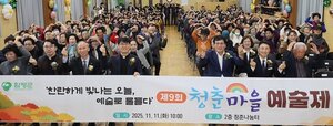 [빛가람뉴스=정영곤 기자] 전남 함평군 노인복지관이 어르신들의 배움과 문화예술 활동을 통해 활기찬 노년 문화를 확산하고 지역사회와 소통하는 뜻깊은 자리를 마련했다.함평군은 13일 “함평군 노인복지관이 지난 11일 함평군노인복지관 대강당에서 ‘제9회 청춘마을 예술제’를 ‘찬란하게 빛나는 오늘, 예술로 물들다’라는 주제로 성황리에 개최했다”고 밝혔다.예술제는 노년사회화교육 프로그램에 참여한 어르신들이 한 해 동안 갈고닦은 실력을 지역사회와 함께 나누는 자리로 마련됐다.이날 행사에는 이상익 함평군수를 비롯해 이남오 함평군의장, 조용무 대